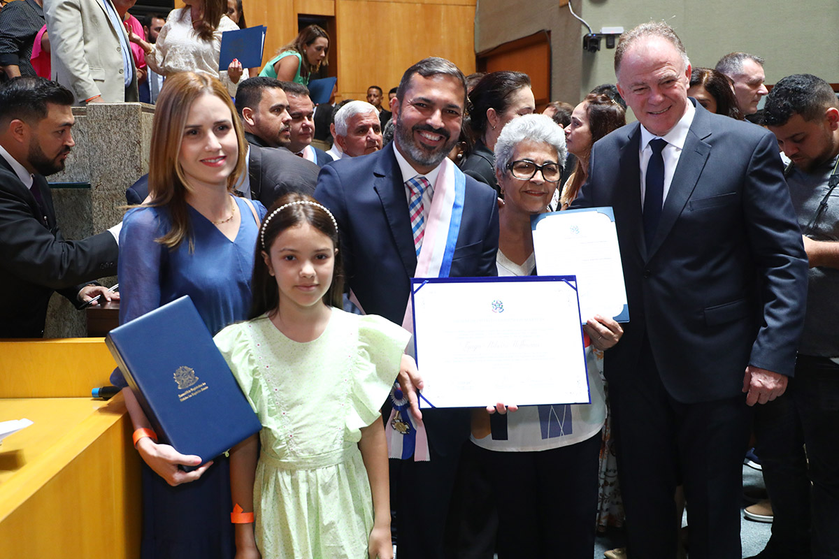Depois de declarar os deputados empossados, Ferraço, ladeado pelo 1º e 2º secretários, iniciou a entrega do termo de posse. Além desse documento, os novos parlamentares receberam a Comenda Domingos Martins no grau Grã-Cruz.