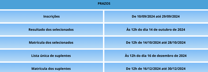 As inscrições para concorrer a uma das 3.500 vagas começaram às 12h desta terça-feira (10) e seguem abertas até 23h59 do dia 29 de setembro de 2024, exclusivamente pelo site do Detran|ES (www.detran.es.gov.br). O prazo de inscrição foi ampliado de 11 para 20 dias, aumentando a possibilidade de que mais pessoas possam tomar conhecimento do programa e concorrer a uma das vagas.