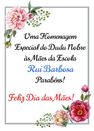 As ações começaram na última quinta-feira (07) e seguem até este domingo (10). Flores foram entregues, mensagens e atividades foram preparadas com muito carinho e dedicação por professores e alunos durante as aulas on-line através da plataforma virtual da escola e envidas através de aplicativo. De acordo com a diretora Dona Ridamar, o Dia das Mães é uma data muito valorizada pela Escola Rui Barbosa e, como não poderiam celebrar reunindo mães e filhos em uma linda homenagem na sede da instituição, surgiu a ideia de convidar um artista conhecido com uma canção que tem a identidade das famílias. O sambista Dudu Nobre foi o escolhido, confira o vídeo: