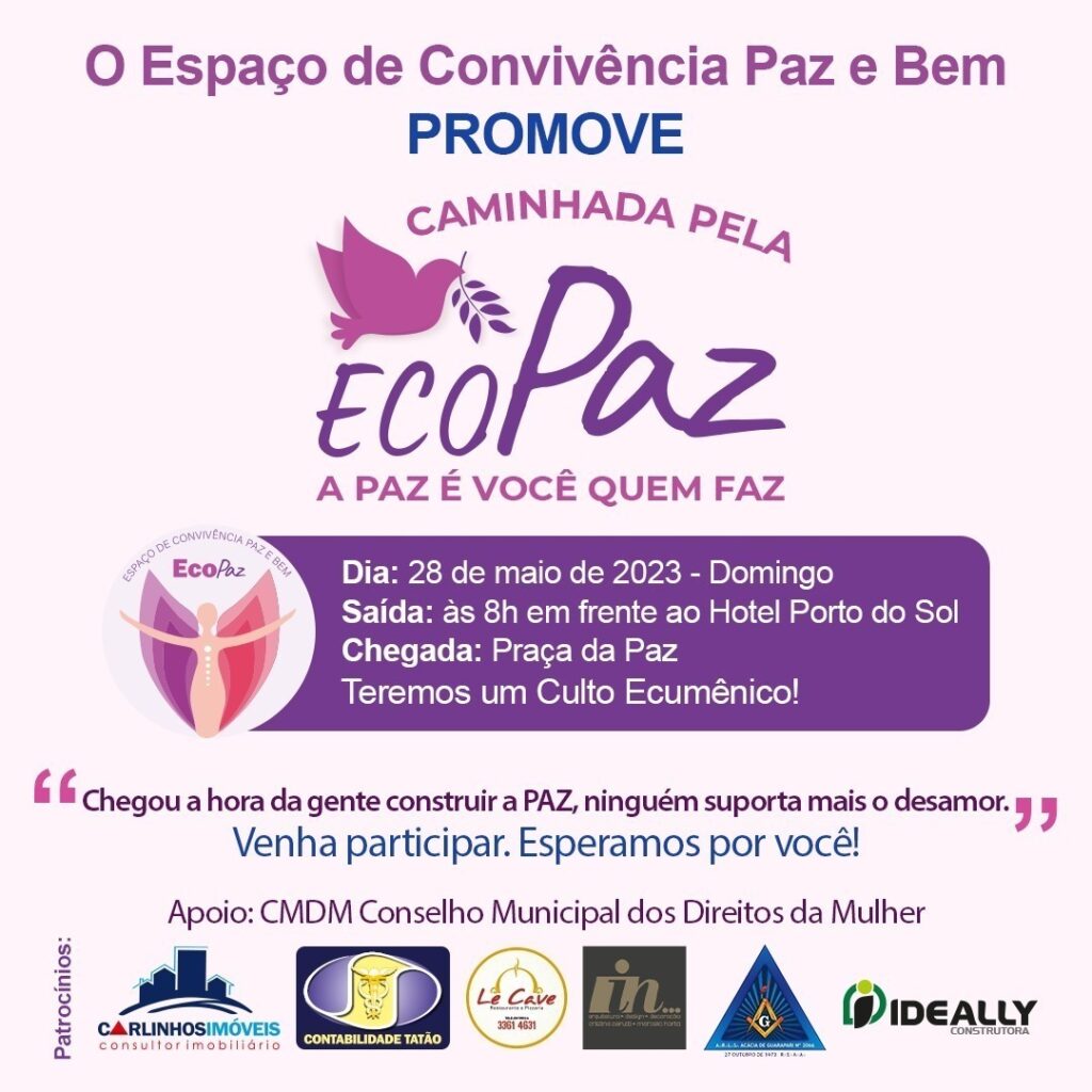 O Espaço de Convivência Paz e Bem – EcoPaz, entidade não governamental de Guarapari que oferta apoio emocional e psicológico a mulheres vítimas de violência, fará no próximo domingo (28) a Caminhada pela Paz. Decretado como *Dia Estadual da Cultura da Paz, o último domingo de maio, chama atenção para os índices altos de violência contra todas as raças e gêneros.