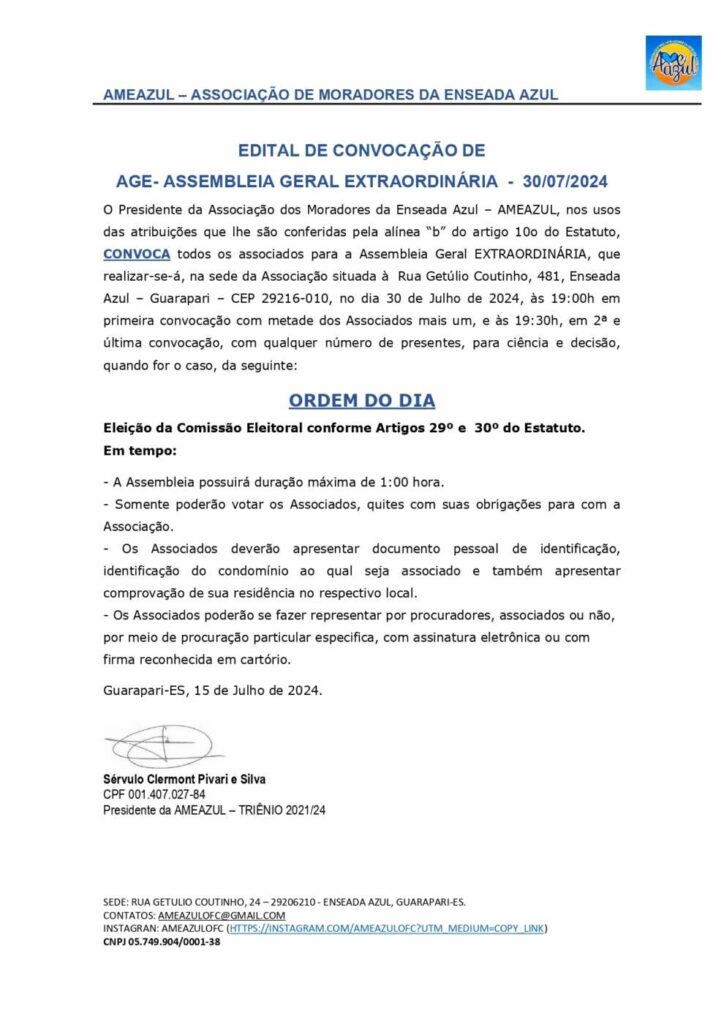EDITAL DE AGO ELEIÇÃO JULHO 2024 – AMEAZUL