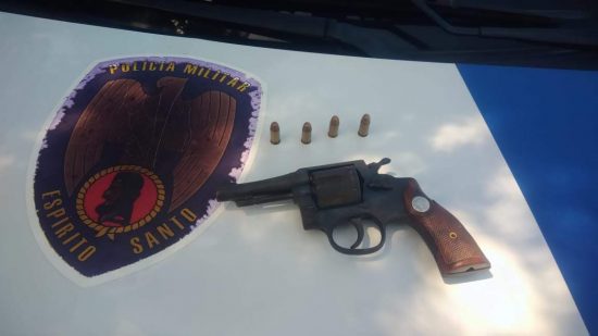 Após fugir, acusado de agredir a companheira foi detido na Rodovia Jones dos Santos Neves. O fato ocorreu na manhã dessa quarta-feira (27), no bairro Jardim Guarapari. Policiais foram ao local após o acionamento via 190, que denunciava que uma mulher estava sendo agredida pelo companheiro. No local, os militares foram informados sobre a existência de uma arma de fogo de propriedade do agressor, um revólver calibre 32 com quatro munições intactas, que foi apreendido.