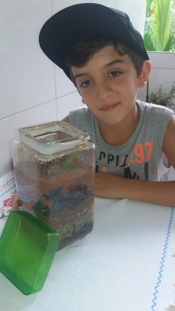 Terrário: com objetivo dos alunos perceberem o ciclo da água e o ecossistema.
