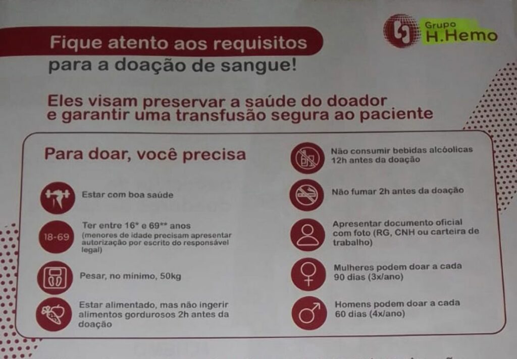 Para doar, os voluntários devem cumprir alguns requisitos. Confira: