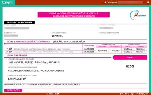 O Instituto Nacional de Estudos e Pesquisas Educacionais Anísio Teixeira (Inep) liberou para consulta o cartão de confirmação de inscrição no Exame Nacional do Ensino Médio (Enem) 2015. No cartão, o candidato poderá conferir o local em que fará a prova neste ano.
