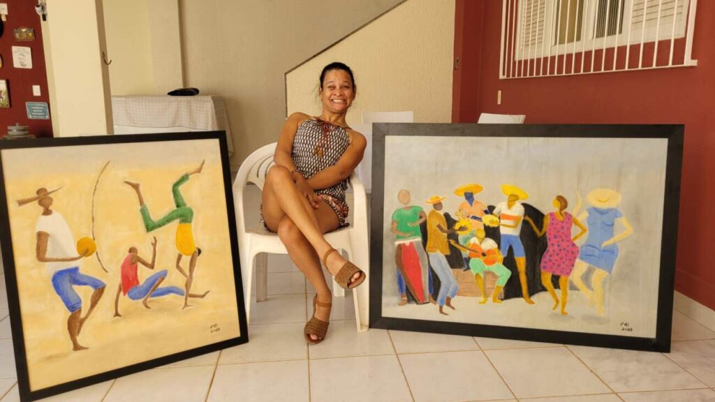 Priscila Barcelos: Comecei há 10 anos. Eu sou formada em administração e recursos humanos, mas as empresas não queriam se adaptar a mim, eu estava tendo dificuldade em conseguir um emprego. Então, eu decidi que queria pintar, aí conheci um artista que me ajudou e me ensinou o básico. Depois, fui pesquisando pela internet e me aperfeiçoei.