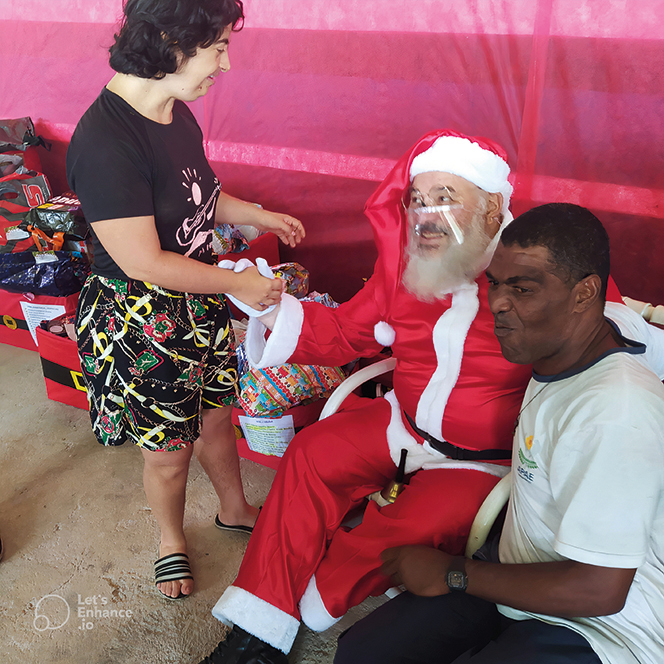 No ano seguinte após fechar a loja, eu passei a visitar algumas instituições, como a Creche Alegria e a APAE, vestido de Papai Noel. Eu sempre começo a fazer o Papai Noel em cima de duas datas: Apae e Creche Alegria. Já a partir de setembro, eu entro em contato para agendar a visita nas festas dessas instituições. Em cima dessas datas, eu agendo o restante.