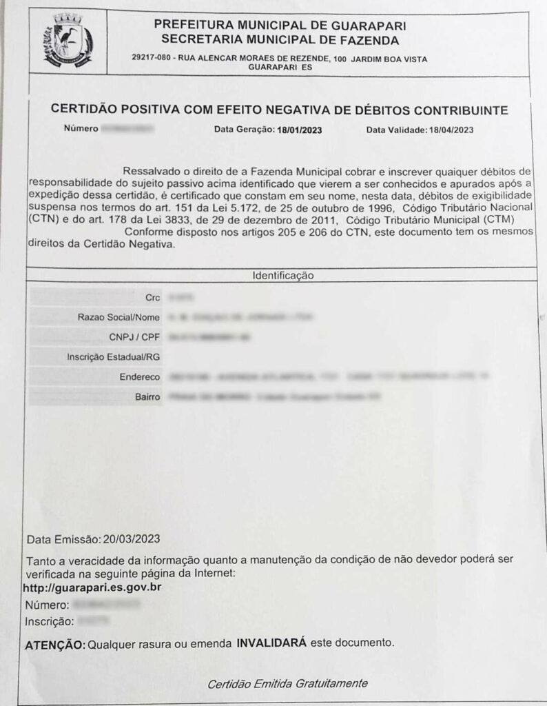Há cerca de 30 dias, usuários que utilizam o serviço de emissão de certidão da Prefeitura de Guarapari estão reclamando da prestação do serviço, que tem retornado as demandas somente com a resposta de certidão positiva com efeito negativo, mesmo para os empresários que não possuem débitos com o município.