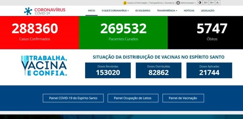 O Governo do Estado começou a divulgar aos dados sobre a vacinação contra o novo Coronavírus (Covid-19) no Painel Covid-19. São informações sobre as vacinas recebidas, distribuídas e aplicadas no Espírito Santo.