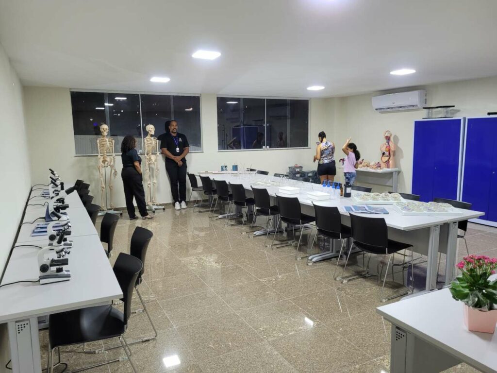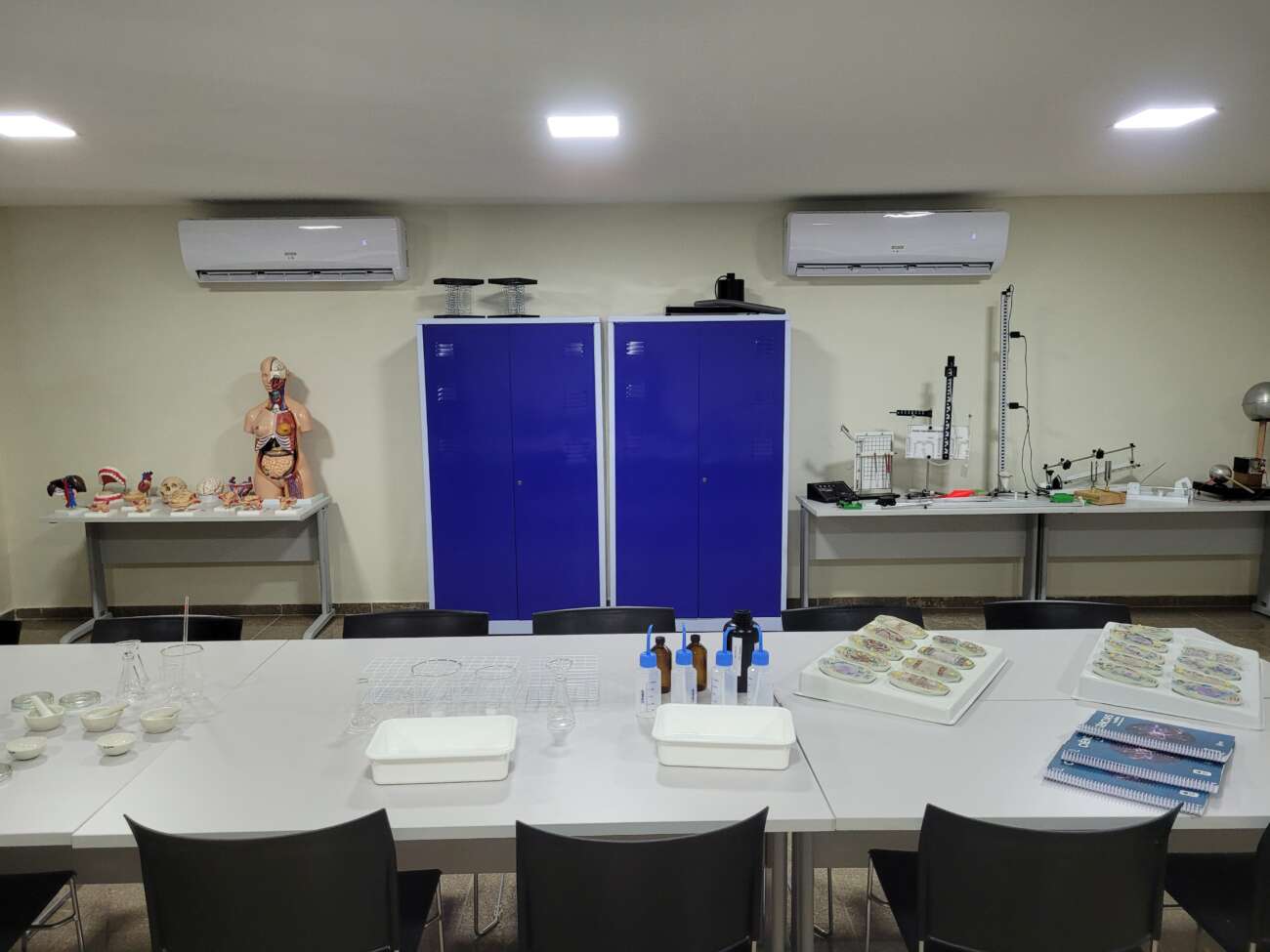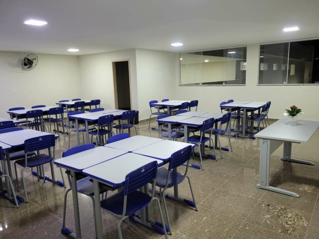 A escola possui 4.700 m² de área construída, três pavimentos e 18 salas de aula