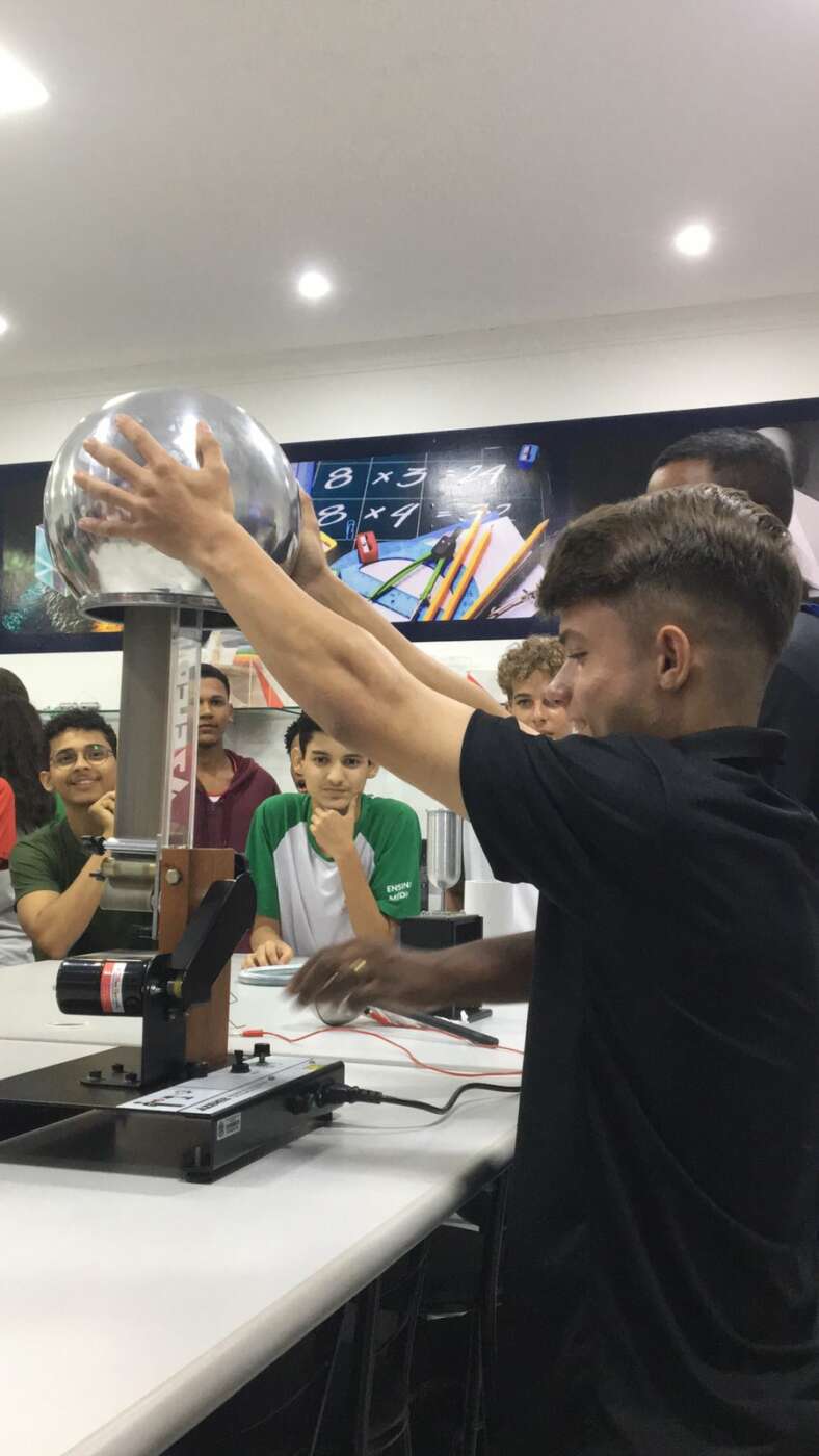 Criado em 2023, o Clube de Física e Astronomia da escola se propõe a promover e divulgar os estudos da área entre os estudantes. “Nosso principal objetivo é promover o interesse e o entendimento da física entre os membros. Queremos proporcionar um ambiente onde todos possam aprender e compartilhar conhecimentos sobre os fenômenos físicos que nos cercam no dia a dia”, explica o professor e coordenador geral do Clube, Aloísio de Sousa Oliveira.