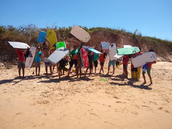 A iniciativa conta com cerca de 30 alunos inscritos e oferece aulas gratuitas de bodyboarding no Recanto da sereia
