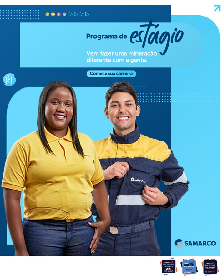 Inscrições online: https://trabalheconosco.vagas.com.br/samarco/estagio-samarco