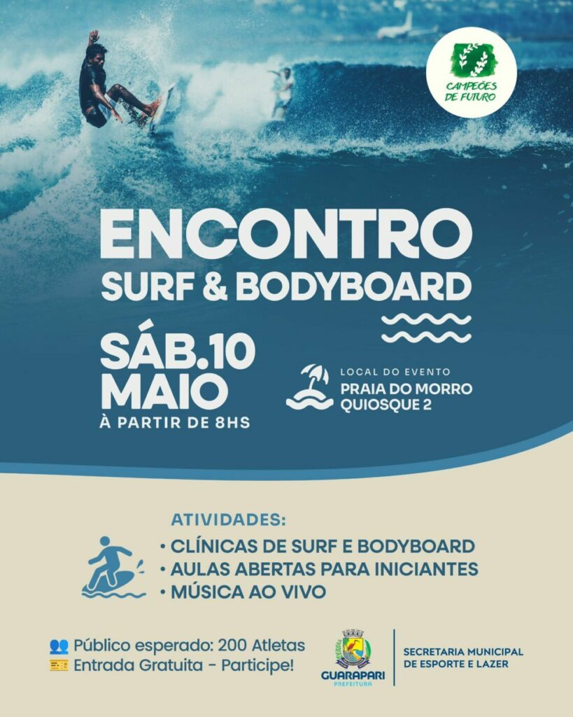 A Praia do Morro será palco de um grande encontro entre o surf e o bodyboard neste sábado (10), a partir das 8h, em frente aos quiosques 2 e 3. O evento marca o retorno das atividades da escolinha de surf e promete movimentar o cenário esportivo da cidade com clínicas, música ao vivo e a presença de mais de 200 atletas.