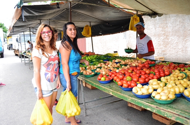Karla e sua filha frequentam a feira todas as quintas-feiras. “É uma ótima forma de economizar e comprar produtos de qualidade”. Foto: Glenda Machado