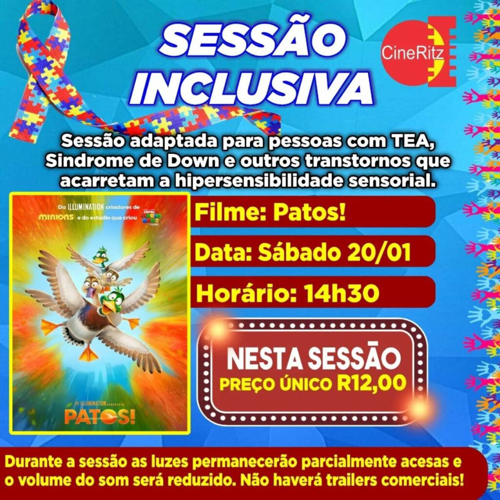 Durante a sessão inclusiva, com apresentação do filme Patos! no preço único de R$12, as luzes permanecerão parcialmente acesas, o som será reduzido, o acesso a sala será livre com as portas e cortinas abertas; e não haverá trailers e comerciais.