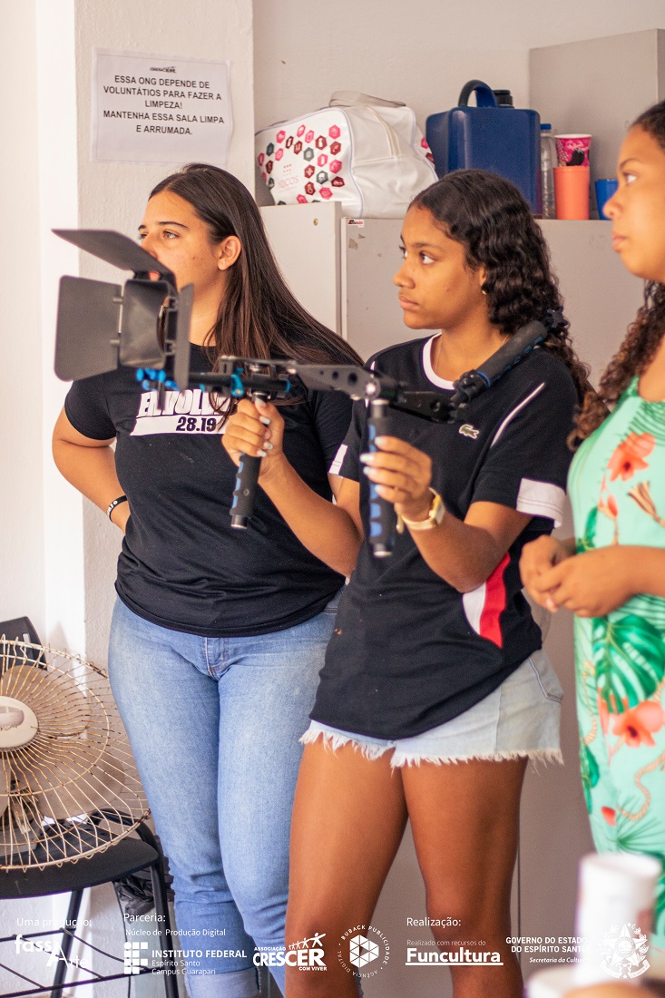 A oficina, cujo conteúdo inclui noções de história, linguagem e realização de filmes documentais, contemplando elaboração de roteiros e produção, foi ministrada por Philipe Fassarella, realizador e produtor cultural, da produtora FassArte. O trabalho foi realizado com apoio da ong Associação Crescer com Viver e do Núcleo de Produção Digital, do IFES Guarapari, parceiros do projeto, e fi-nanciamento da Secult-ES, por meio do edital Funcultura. A formação, oferecida gratuitamente, te-ve 17 participantes, extrapolando o número inicialmente previsto pela equipe, que era de 6 jovens, sendo que 15 pessoas vão receber o certificado pela participação em todas as atividades do proje-to.
