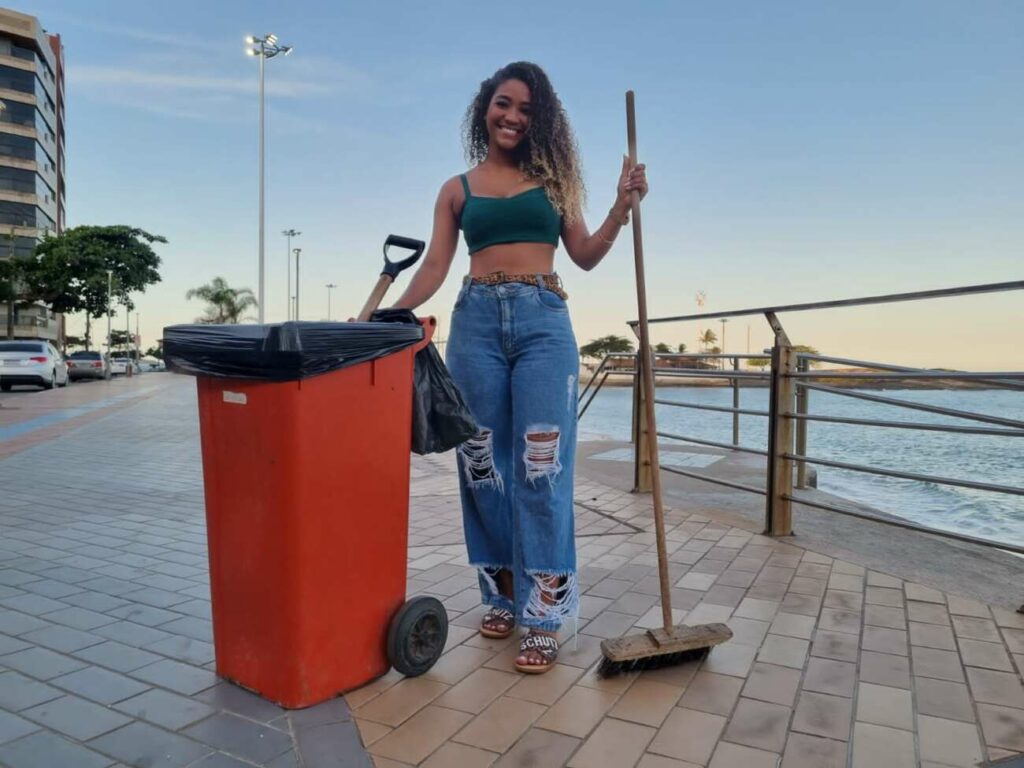 A sujeira das ruas que se contrasta com a beleza das maquiagens e roupas, assim Luiza Martins de Souza Scrivani, 24 anos, vive a rotina diária. Trabalhando como gari na parte da manhã e realizando trabalhos de modelo e influencer à tarde, a moradora de Guarapari, natural de Nova Iguaçu, no Rio de Janeiro, vai conciliando as carreiras entre a estabilidade do serviço público e a efemeridade das redes sociais.