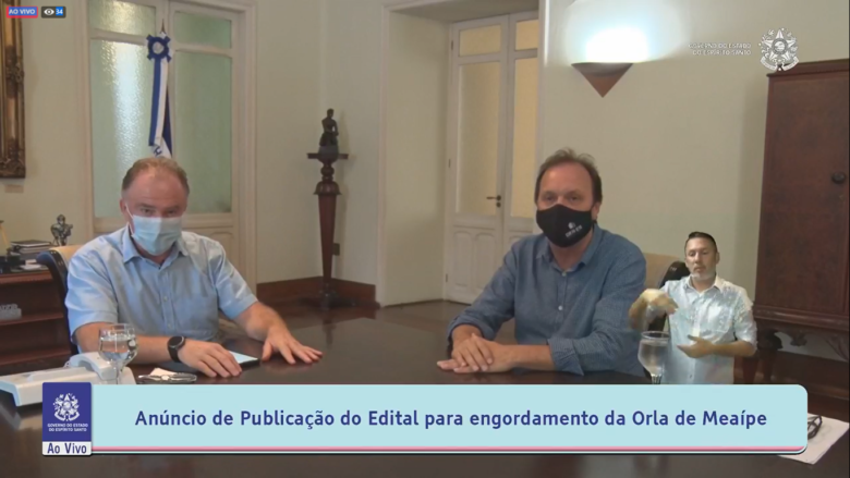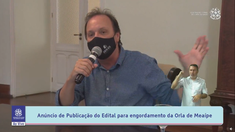 O Governador Renato Casagrande anunciou na tarde dessa sexta-feira (26) em transmissão ao vivo, o lançamento das obras de engordamento da região de Meaípe. As obras que vão conter a erosão e restaurar a região, possuem um valor de referência estimado em R$68.229.704,70. Também participou da transmissão o diretor-presidente do Departamento de Edificações e de Rodovias do Espírito Santo (DER-ES), Luiz Cesar Maretto.