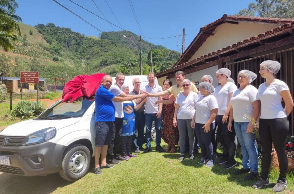 A Associação das Mulheres da Prata recebeu um novo veículo do Governo do Estado, por meio da Secretaria de Agricultura, Abastecimento, Aquicultura e Pesca (SEAG), na manhã dessa sexta-feira (28), com participação do prefeito Fabrício Petri. A entidade, localizada na comunidade de Córrego da Prata, no interior de Anchieta, ganhou um furgão Fiorino completo, que irá ajudar na comercialização dos produtos fabricados pela associação.