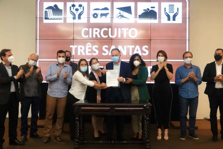Para fortalecer a infraestrutura turística com foco no desenvolvimento do Circuito Turístico Três Santas, o Departamento Estadual de Trânsito do Espírito Santo (Detran – ES) firmou um termo de parceria com a Setur e com o Departamento de Edificações e Rodovias do Espírito Santo (DER). A iniciativa possibilitará a sinalização de cerca de 40 atrativos turísticos, por meio da instalação de 106 placas de sinalização vertical, que contemplarão também as áreas rurais nos municípios que fazem parte do Circuito.