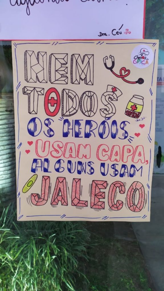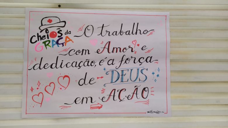 Os cartazes repletos de afeto foram produzidos pelo próprio grupo, com o intuito de fornecer alento e força aos profissionais que têm encarado ainda mais pressão cotidianamente, devido à pandemia do novo coronavírus (Covid-19). “Sabemos que por trás do profissional se encontra uma mãe, pai, filho que neste momento está sob pressão”, afirma Marcela.