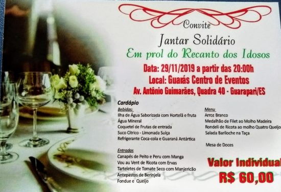 O evento acontecerá a partir das 20h no Guará Centro de Eventos em Itapebussu. O convite custa R$60 com direito a bebidas não alcoólicas, entradas, jantar e mesa de doces. “O dinheiro arrecadado será utilizado para a folha de pagamento do final do ano e material de limpeza do Recanto”, contou Cleide de Oliveira, auxiliar administrativa do local.