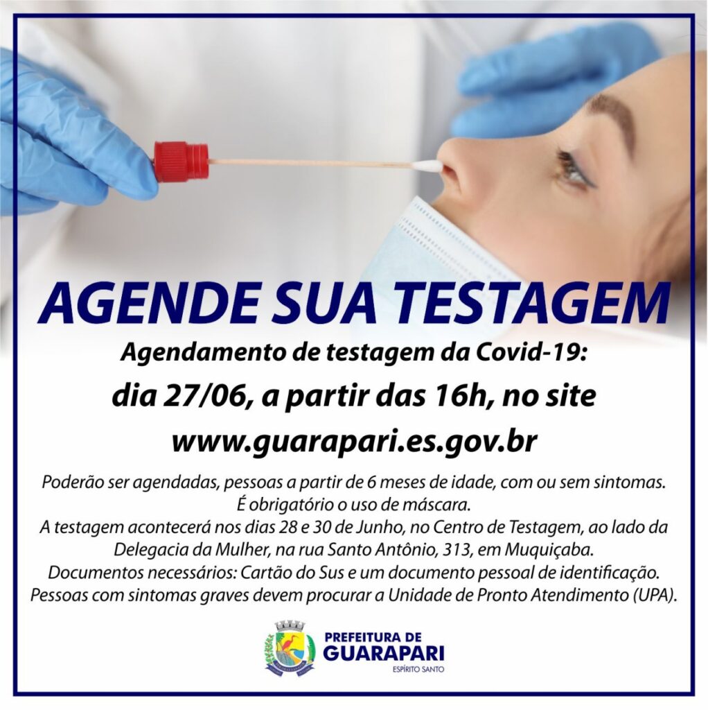 A Prefeitura de Guarapari, através da Secretaria Municipal de Saúde (Semsa), abre nessa segunda-feira (27), o agendamento para realização do teste de antígeno da Covid.19.