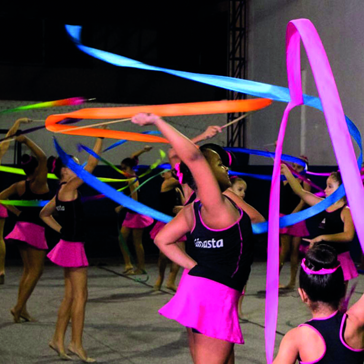 Ana Paula: A GR desenvolve o corpo integralmente. As alunas trabalham equilíbrio, coordenação motora, força, flexibilidade e melhoram as noções de ritmo, já que é uma modalidade que envolve ginástica, malabarismo e dança.