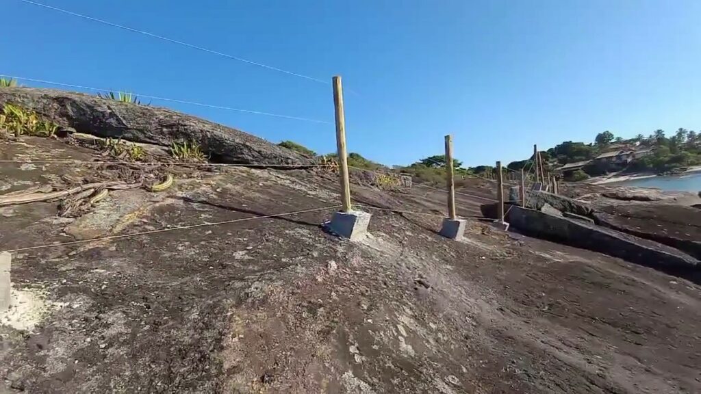 Vídeos e imagens começaram a circular nas redes sociais na tarde de ontem (29), mostrando uma cerca construída em cima das pedras no caminho que leva até a Praia do Netuno, em Guarapari.