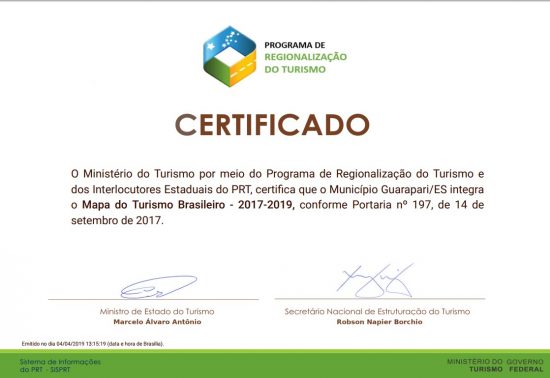 Essa atualização ocorre a cada dois anos. Em 2017, eram 3285 municípios e 328 regiões turísticas no documento. No Espírito Santo, dez regiões e 62 cidades, incluindo Guarapari – que faz parte da Região Turística Metropolitana –, estão presentes no Mapa. Em nota, a prefeitura informou que já enviou quase toda documentação para Secretaria de Estado de Turismo (Setur), pendente apenas a Declaração assinada pelo atual Coordenador da Instância de Governança da Região Metropolitana, Sr. Felipe Ramaldes, que atua no Departamento de Turismo do Município de Vitória. O prazo é até 31 de maio.