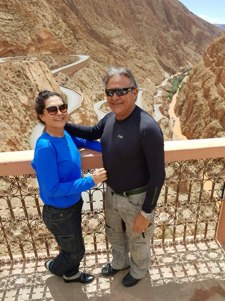 Márcio de 70 anos e Mirza de 58 anos já visitaram de moto: Uruguai, Marrocos, Espanha, Chile, entre outros países
