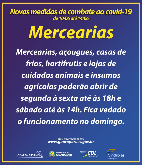 Guarapari: Mercearias, açougues e outros comércios não funcionarão nesse domingo (14)