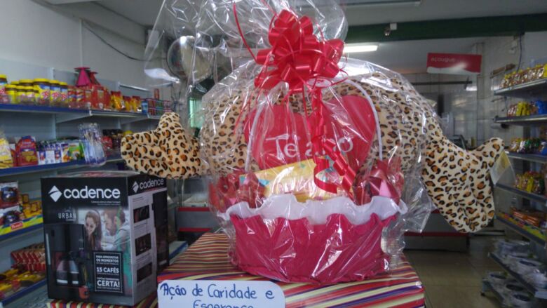 O prêmio da rifa é uma cesta de chocolates com pelúcia e uma cafeteira elétrica, Foto: Arquivo Pessoal