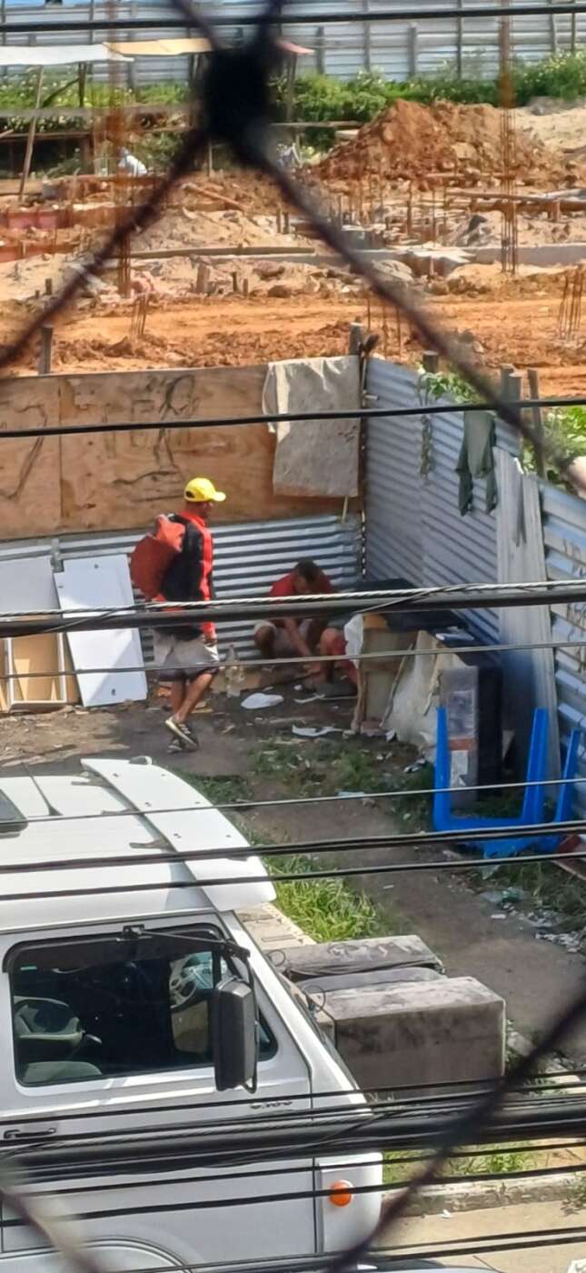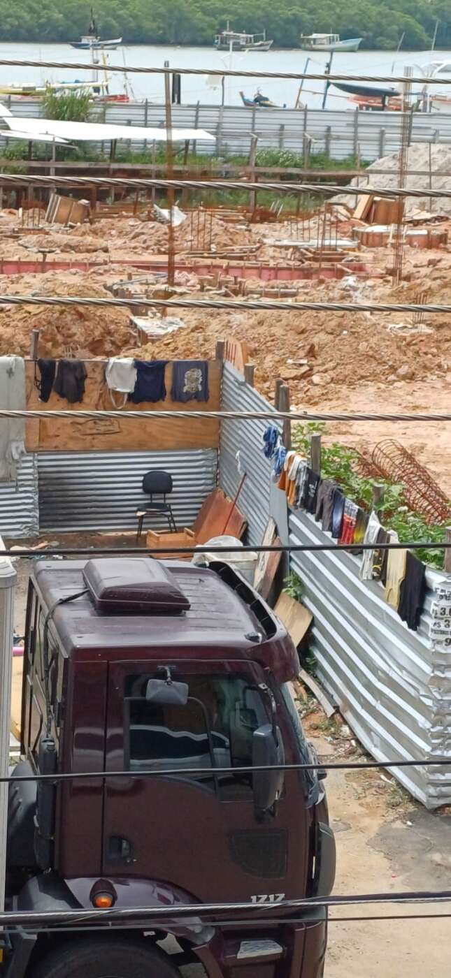 Em registros recentes, o canteiro de obra da construção do novo Mercado de Peixe se tornou “casa” dos usuários com sofá e roupas secando em estruturas de alumínio que cercam a obra, que é de responsabilidade do município.