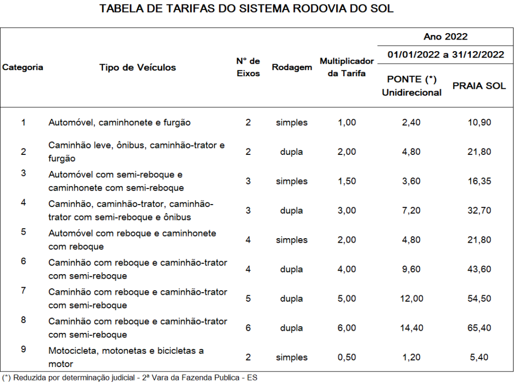 Guarapari: Pedágio da Rodovia do Sol passa para R$ 10,90 em 2022