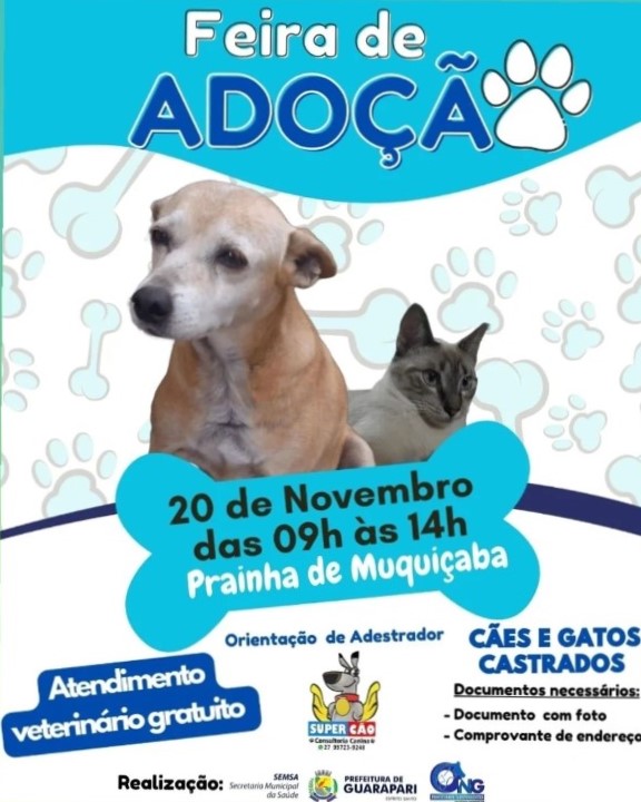 A 7ª edição da Feira de Adoção de Cães e Gatos de Guarapari será realizada nesta quarta-feira (20), das 09h às 14h, na Prainha de Muquiçaba. O evento, promovido pela Prefeitura de Guarapari, por meio do Centro de Controle de Zoonoses em parceria com a ONG Protetores Independentes | Animais Carentes, visa proporcionar lares responsáveis para cerca de 20 animais disponíveis para adoção.