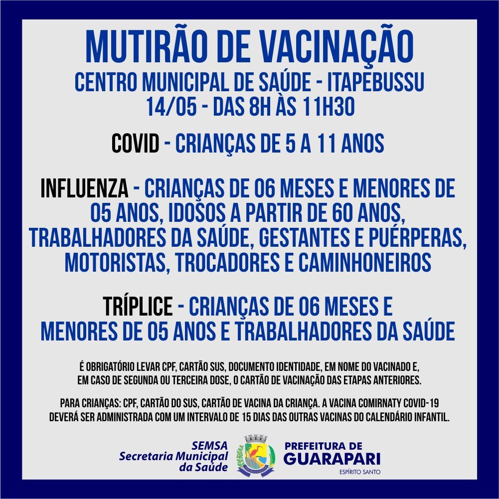Na Unidade de Saúde Arnaldo Magalhães, em Muquiçaba, acontecerá uma ação de testagem da Covid-19. Já no Centro Municipal de Saúde, em Itapebussu, um mutirão de vacinação vai imunizar a população contra Covid-19, Influenza e vai aplicar os imunizantes do tríplice viral.