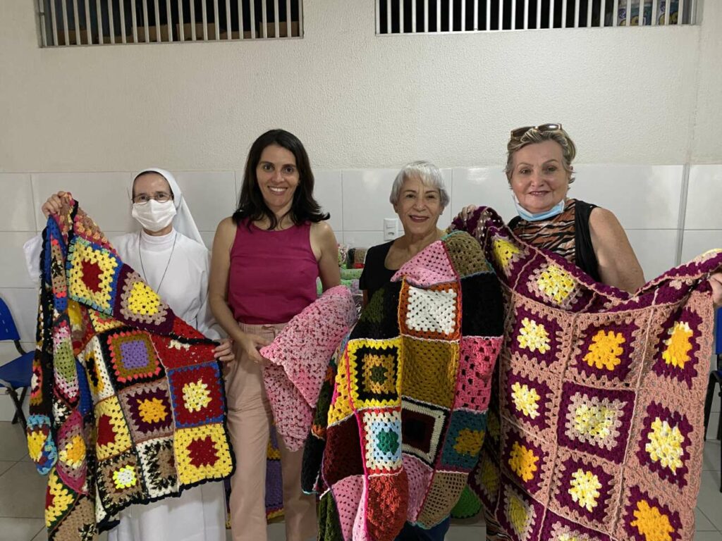 Irmã Marilza, do Risa, agradeceu a lembrança do grupo na doação à instituição. “É um gesto muito bonito de reunir um grupo de pessoas para juntarem as lãs e fazer essas mantinhas. A gente vê que é um trabalho muito delicado, feito de pontinho em pontinho, e lembrar das instituições é muito bonito. É um trabalho de muita dedicação.”