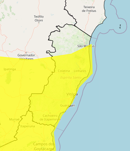 O município de Guarapari está incluído na área de alerta amarelo de perigo potencial para chuvas intensas divulgado na manhã desta segunda (19) pelo Instituto Nacional de Meteorologia (Inmet). O aviso é válido para grande parte da região Sudeste e parte do Centro-Oeste do Brasil. Segundo o instituto, há previsão de chuva entre 20 e 30 mm/h ou até 50 mm/dia, além de ventos intensos entre 40 e 60 km/h. O boletim é válido até 10h desta terça-feira (20).
