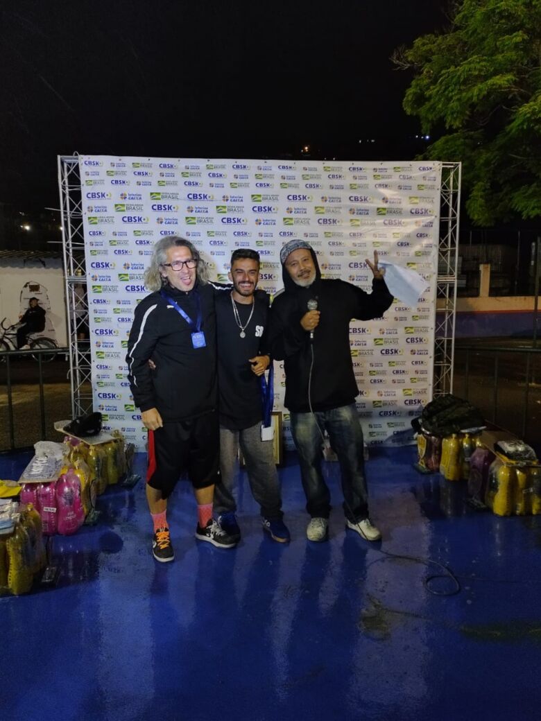 Da esquerda para a direita: João, Gabriel e Erick. Ilio à esquerda recebendo a medalha.