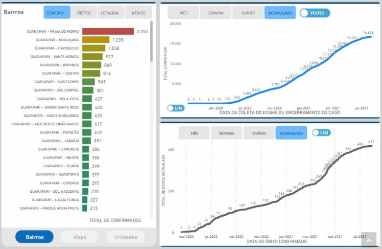 Até a última atualização do painel para mês de junho (30/06), a cidade registrava 405 casos de óbitos acumulados por vítimas da Covid-19 na cidade. Um mês depois, com a atualização na tarde desta sexta-feira (30/07), o painel apontou um total de 417 óbitos acumulados pela doença, causada pelo Coronavírus.