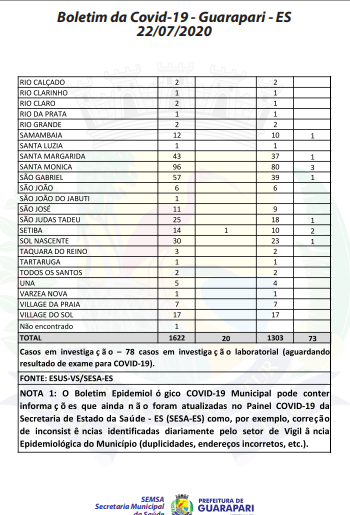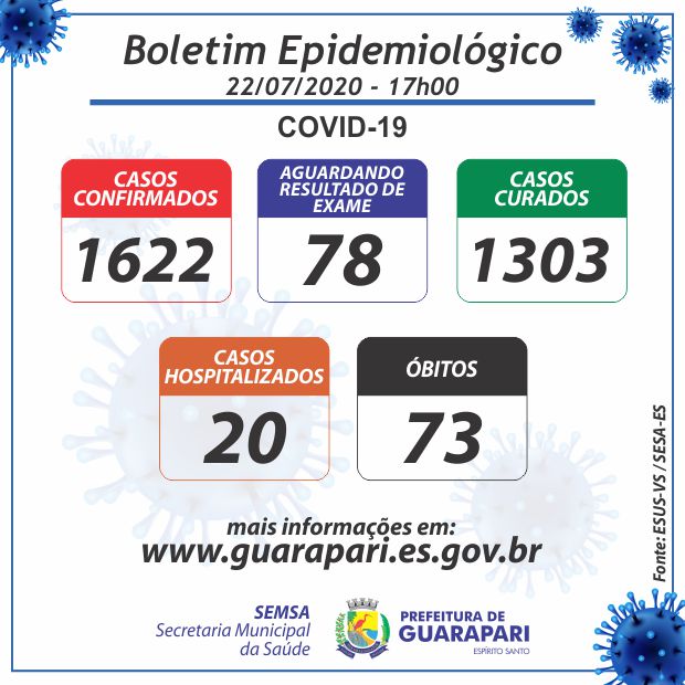 Hoje (22), Guarapari registrou mais duas mortes pelo novo coronavírus, totalizando, assim, 73 óbitos pela doença.