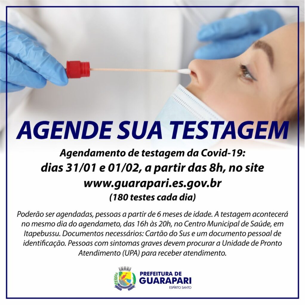 A Prefeitura de Guarapari, através da Secretaria de Saúde (Semsa), abre nesta segunda-feira (31) e terça-feira(01), agendamento para realização do teste de antígeno da Covid-19, através do site do município, a partir das 08h.