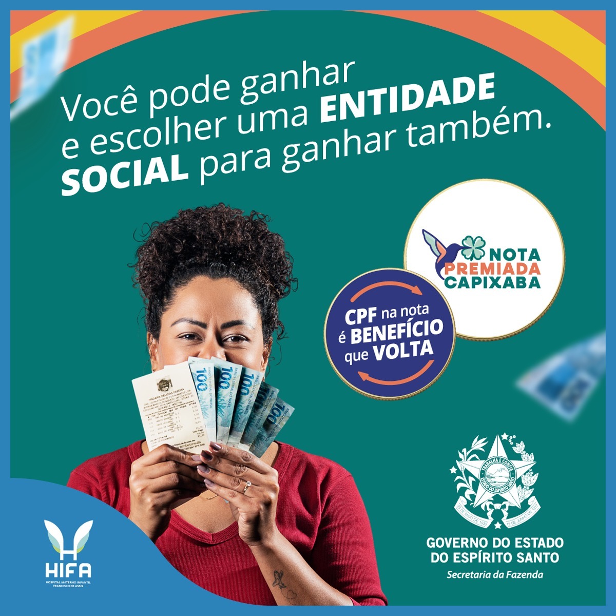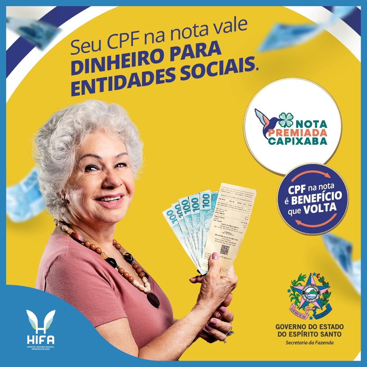Para ajudar o HIFA Guarapari, os consumidores devem acessar www.notapremiadacapixaba.es.gov.br e se cadastrar no programa. Em seguida devem selecionar o HIFA: Hospital Infantil Francisco de Assis – Guarapari. E sempre que fizerem compras em estabelecimentos capixabas solicitar a inclusão do CPF na Nota Fiscal.