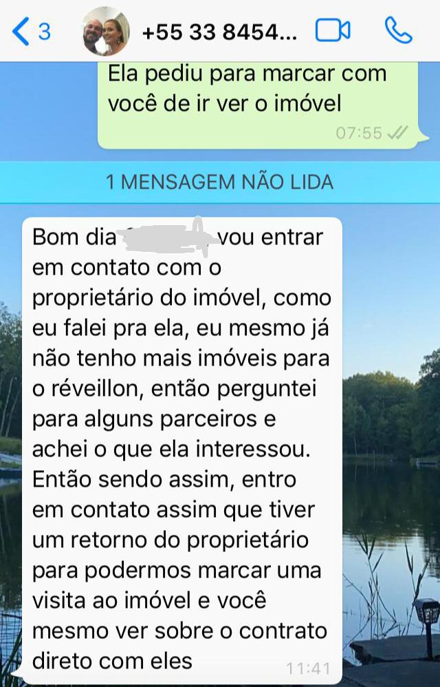 Com outras vítimas de golpe na família, a turista mineira se atentou aos detalhes, antes de verificar com o amigo em comum à proprietária. “Meu primo foi vítima do mesmo tipo de golpe, para uma casa em Búzios. Quando vi que no Facebook ele não tinha tantos amigos, possuía apenas foto de capa e perfil, e no WhatsApp a foto era a mesma do Facebook; logo desconfiei. Para a minha sorte, o meu amigo mora no bairro do apartamento que eu iria alugar, então pedi para ele confirmar a existência e coincidentemente, ele é amigo da dona. O Flávio foi informado que o meu amigo iria ao local para conhecer o espaço, mas na hora de agendar a visita, ele inventou uma desculpa e depois parou de responder”, explica a turista.