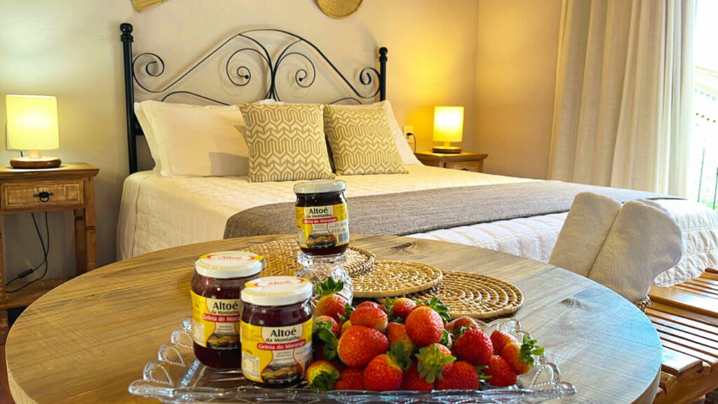E a procura para o fim de semana da festa é ainda maior. E em alguns locais, os hóspedes serão recebidos com agrados, como geleia da fruta e biscoitos. Além disso, no café da manhã não faltarão opções com morangos.