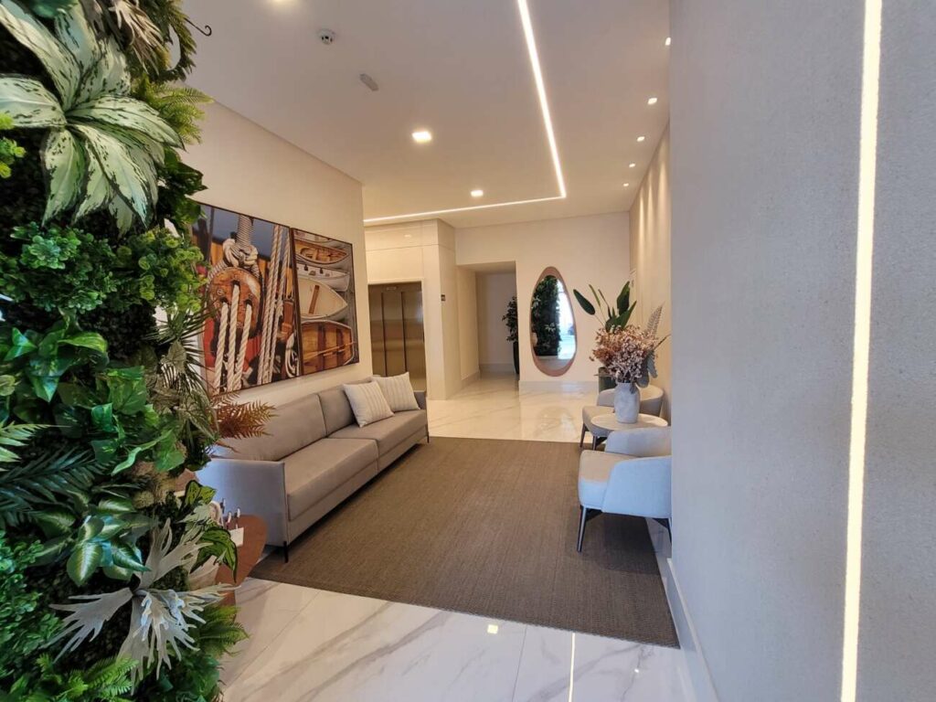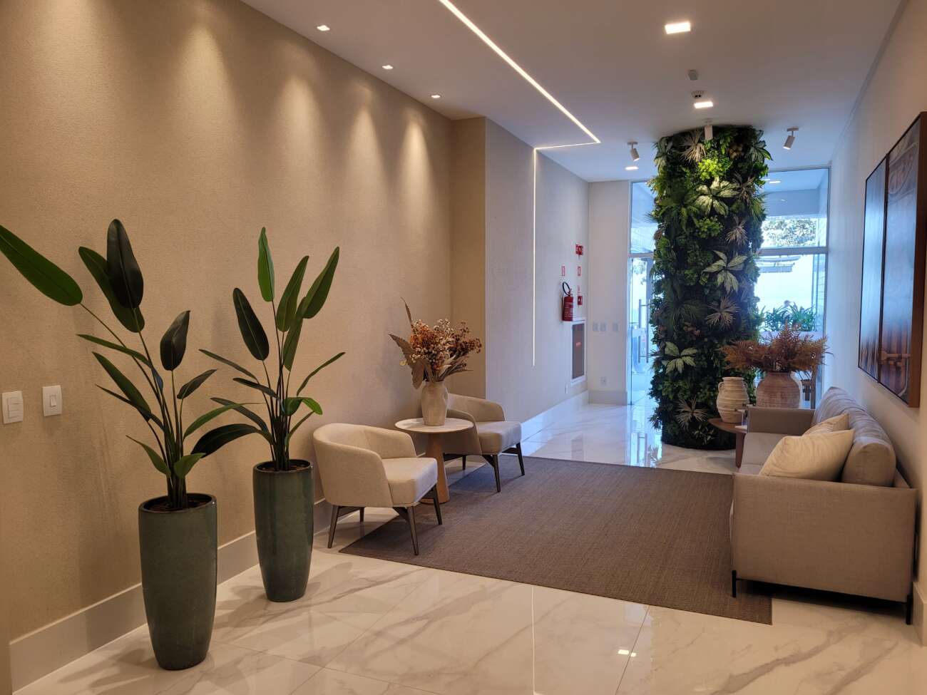 A arquiteta e sócia proprietária da Ideally, Iasmin Mai, responsável pelo projeto do empreendimento, explicou que o tema marítimo ganhou notoriedade no hall de entrada do edifício. “Nós tivemos um bom espaço para trabalhar a iluminação devido ao pé direito. Usamos quadros e itens que remetam a praia, que nós gostamos de usar e sempre agrada.”