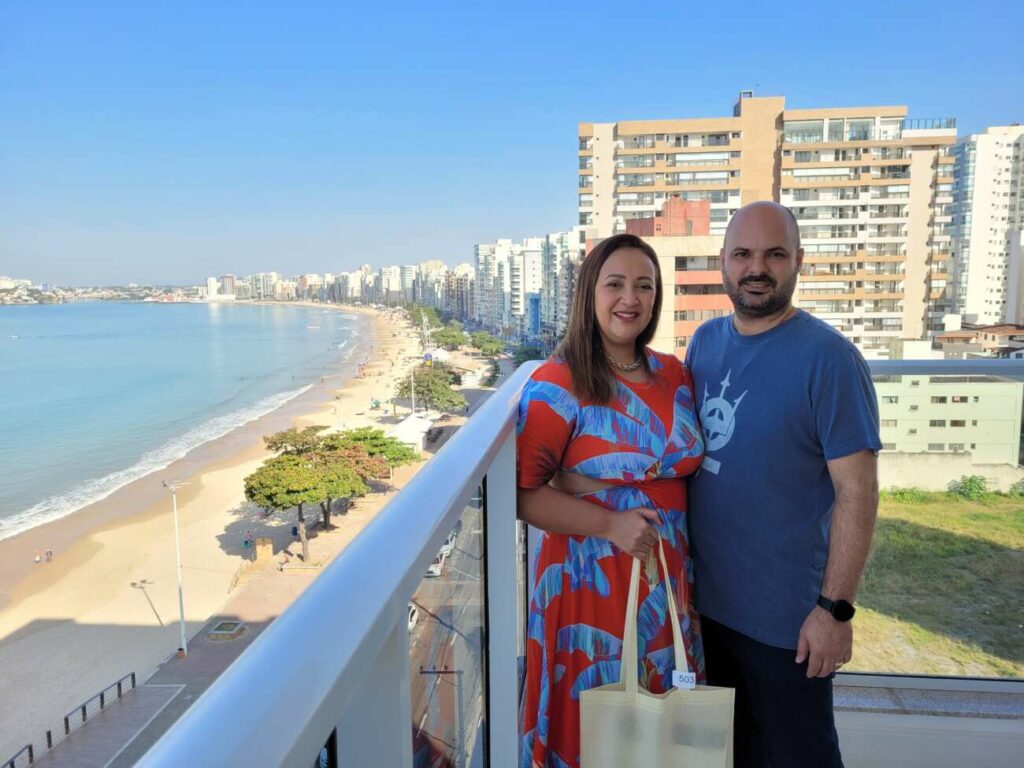 “Fiquei supersatisfeito com a forma que eles nos atenderam. Nós não morávamos em Guarapari, mas toda vez que vínhamos à cidade existia esse contato com a Praia do Morro, quando vimos a possibilidade de comprar um produto da Ideally ficamos muito contentes. As expectativas que criamos foram atendidas, tanto em relação à qualidade, quanto à negociação sempre com muita transparência, e o fato de entregar o edifício antes do prazo surpreendeu e nos deixou muito felizes” – Leonardo Correa, corretor de imóveis, e Aline dos Santos Correa, médica.