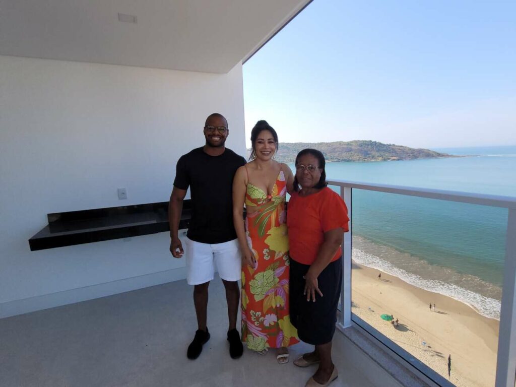 “Apartamento maravilhoso, a construtora está de parabéns, tudo perfeito! Nós já tivemos outro apartamento aqui e esse surpreendeu demais. Somos de Caratinga, Minas Gerais, e essa vista é maravilhosa, estou muito satisfeita.” – Renata Carla Lélis Teixeira, do lar.
